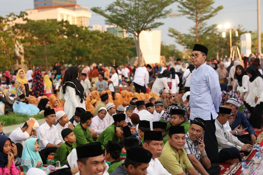 Sekitar lima ribu kaum dhuafa dan anak panti asuhan se-Makassar berbuka puasa dengan Wali Kota Makassar Mohammad Ramdhan Pomanto, di Anjungan Pantai Losari, Jumat (2/5). Agenda tersebut menjadi agenda rutin wali kota setiap hari Jumat selama bulan Ramadan. Kegiatan disebut menggunakan infaq pegawai lingkup Pemkot. (ARI)