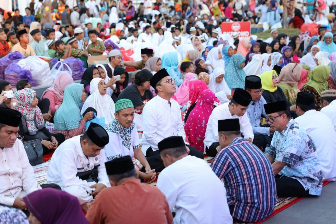 Pemerintah Kota Makassar kembali menggelar buka bersama dengan dengan sekitar lima ribu kaum dhuafa dan anak yatim di Anjungan Pantai Losari Makassar, Jumat (9/6). Kegiatan ini dirangkaikan dengan shalat tarawih berjamaah pegawai pemkot beserta masyarakat Makassar. Agenda tersebut menjadi rutinitas Pemkot setiap pekan selama Ramadan. (ARI)