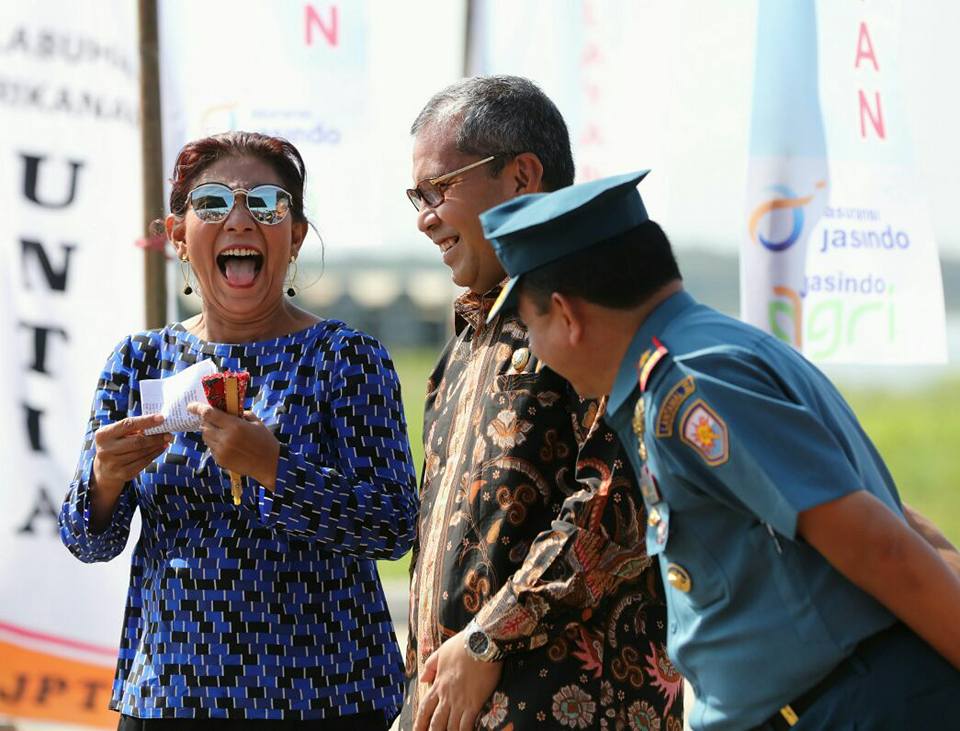 Wali Kota Makassar Danny Pomanto mendampingi Presiden Republik Indonesia Joko Widodo saat meresmikan penggunaan Pelabuhan Perikanan Nusantara di kelurahan Untia, kecamatan Biringkanaya Makassar, Sabtu (26/11). Pelabuhan diharapkan sebagai salah satu sentra distribusi hasil kekayaan laut di Indonesia timur. Di kesempatan yang sama, Menteri Kelautan dan Perikanan Susi Pudjiastuti juga membagikan kartu asuransi bagi perwakilan nelayan. (ARI)