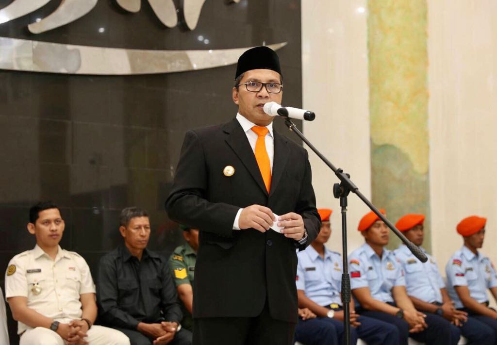 Wali Kota Makassar Danny Pomanto mengukuhkan 70 anggota Pasukan Pengibar Bendera (Paskibra) di Rumah Jabatan Wali Kota, jalan Penghibur Makassar, Rabu (16/8). Paskibra akan bertugas mengibarkan bendera merah-putih pada upacara peringatan Hari Ulang Tahun Republik Indonesia ke-72 di Lapangan Karebosi, 17 Agustus besok. Anggota Paskibra Makassar dipilih dari berbagai sekolah menengah atas di Makassar. (ARI)