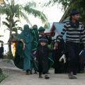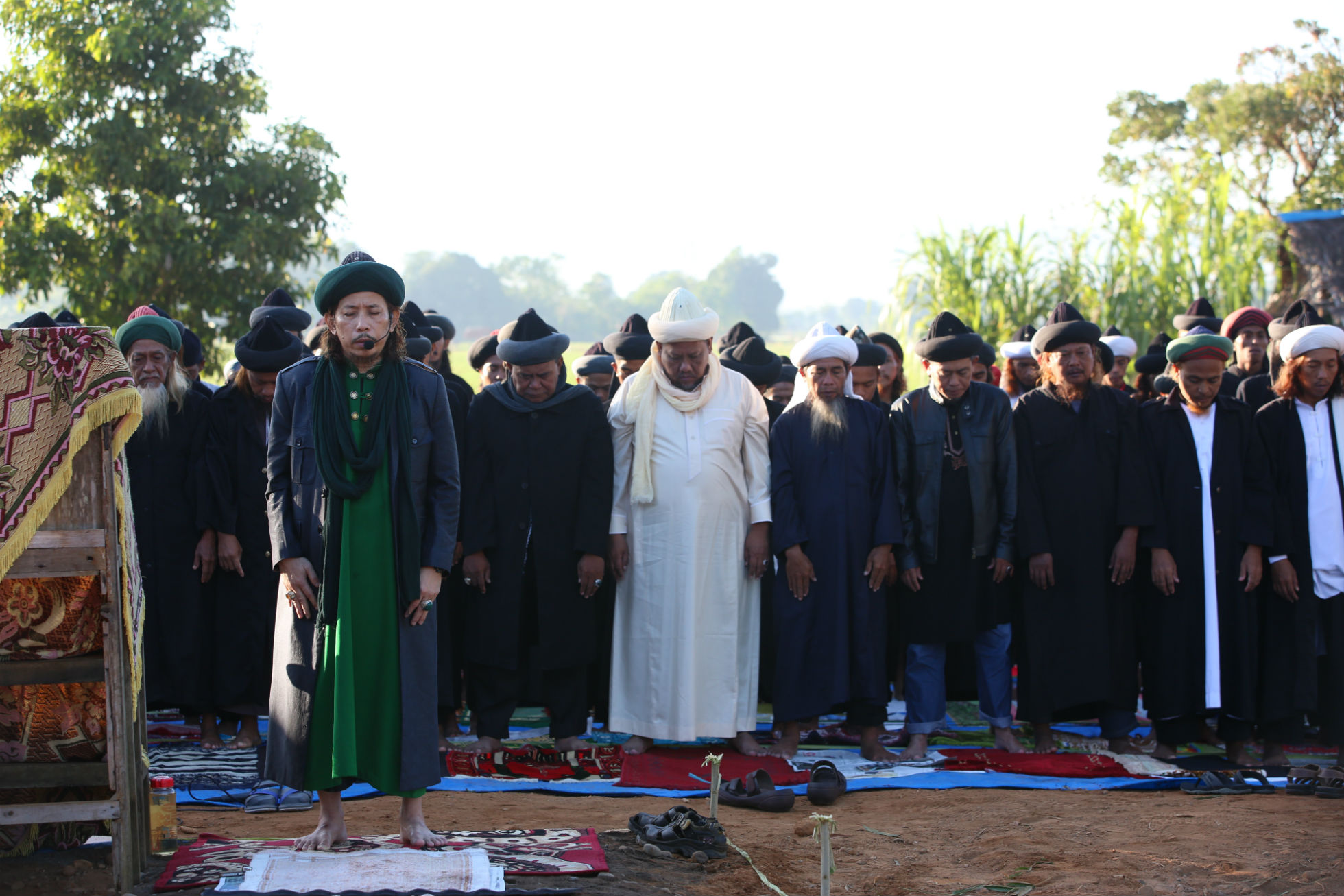 Ratusan jemaah An Nadzir menunaikan Salat Idul Fitri di Kampung Butta Ejayya, kecamatan Bontomarannu Kabupaten Gowa, Sulawesi Selatan, Selasa (5/7). Lebaran tahun ini seperti kebiasaan pada tahun-tahun sebelumnya, di mana sering kali mendahului waktu yang ditetapkan oleh pemerintah dan ormas Islam lainnya.