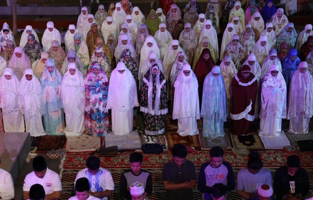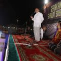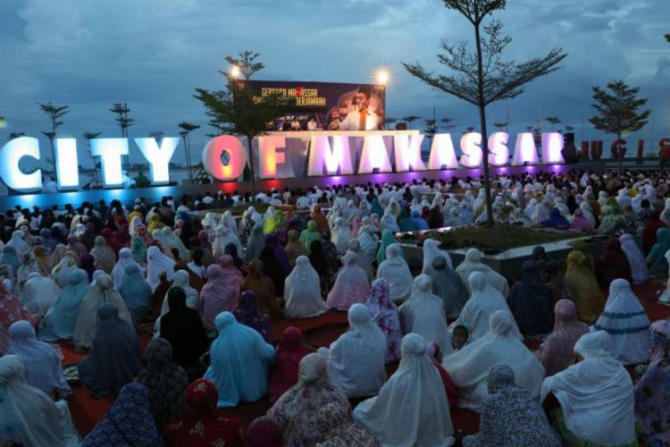 Ribuan umat Muslim dari berbagai kalangan masyarakat turut serta melaksanakan ibadah shalat subuh berjamaah di Anjungan Pantai Losari Makassar, Minggu (28/5). Gerakan Shalat Subuh Berjamaah digelar Pemerintah Kota Makassar pada setiap hari Minggu selama Ramadan. Kali ini ibadah juga diisi ceramah Islami oleh da'i kondang Ustad Maulana. (ARI)