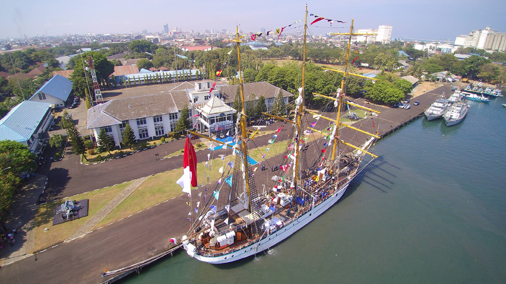 Kapal latih legendaris TNI Angkatan Laut KRI Dewaruci merapat di dermaga layang Markas Komando Pangkalan Utama AL (Lantamal) VI Makassar, Selasa (20/9) pagi. Kapal tersebut mengangkut puluhan taruna atau kadet dari delapan negara di Asia Tenggara, yang tergabung dalam pelayaran ASEAN Cadet Sail. Kapal tersebut menempuh jalur pelayaran di perairan Indonesia kawasan timur menuju dermaga asalnya di Surabaya, Jawa Timur.