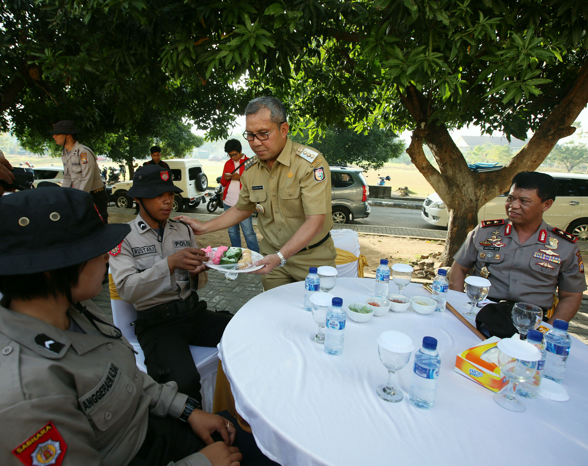 Wali Kota Makassar Mohammad Ramdhan ‘Danny’ Pomanto dan Kepala Polda Sulawesi Selatan Inspektur Jenderal Pol Anton Charliyan memimpin apel bersama Forum Koordinasi Pimpinan Daerah di halaman Markas Polda Sulsel, Rabu (10/8) pagi. Lewat kegiatan itu, mereka menunjukkan solidnya pemerintah dan polisi, meski sebelumnya terjadi insiden bentrokan antara oknum kedua pihak di Kantor Balai Kota Makassar. Apel dilanjutkan dengan silaturahmi dalam coffee break. (ARI)