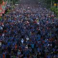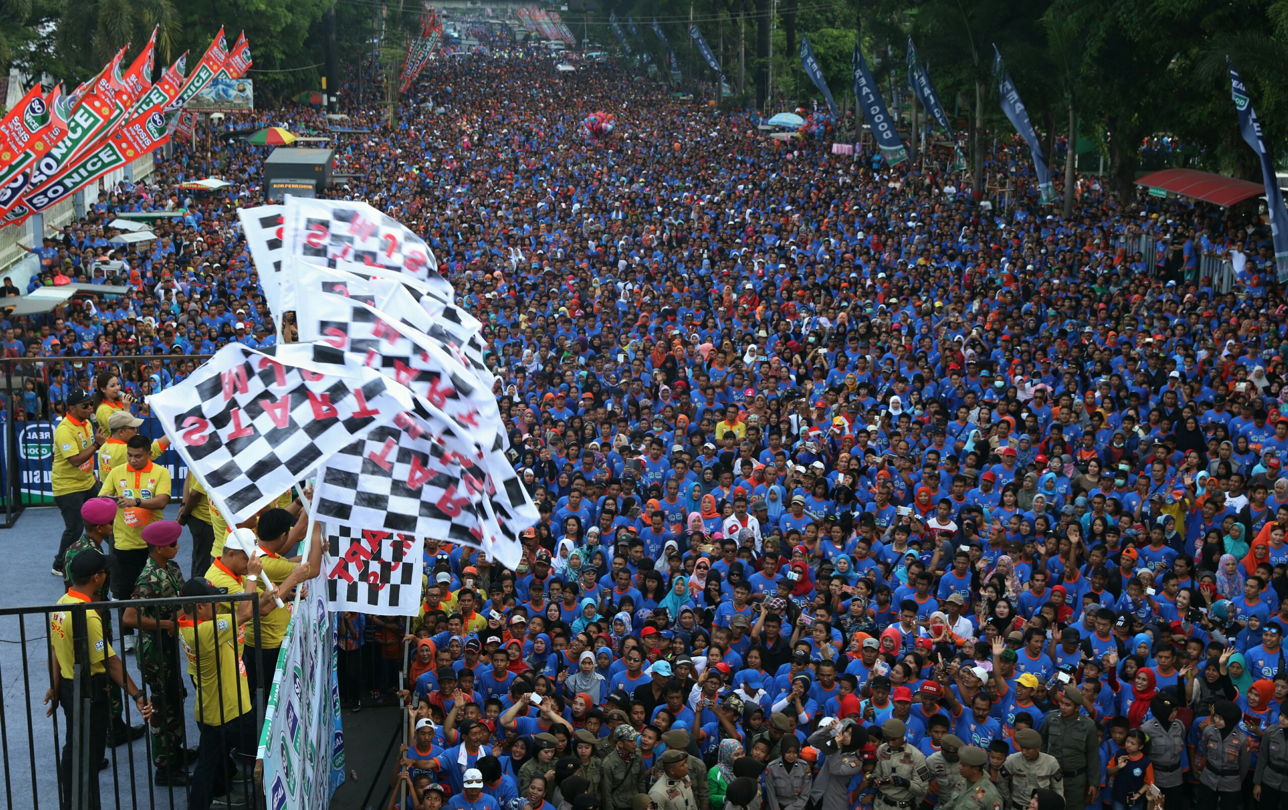 Ratusan ribu orang menghadiri kegiatan Makassar Jalan Sehat dalam memperingati hari ulang tahun kota Makassar ke-409, Minggu (6/11). Panitia mengklaim 101 ribu kupon habis terjual, sedangkan peserta ditaksir hingga 200 ribu orang dari berbagai kalangan masyarakat.