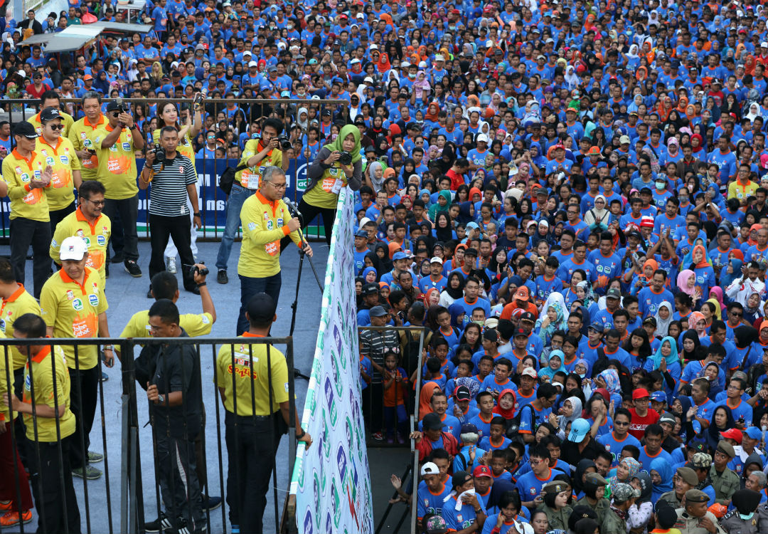 Ratusan ribu orang menghadiri kegiatan Makassar Jalan Sehat dalam memperingati hari ulang tahun kota Makassar ke-409, Minggu (6/11). Panitia mengklaim 101 ribu kupon habis terjual, sedangkan peserta ditaksir hingga 200 ribu orang dari berbagai kalangan masyarakat.