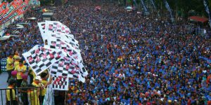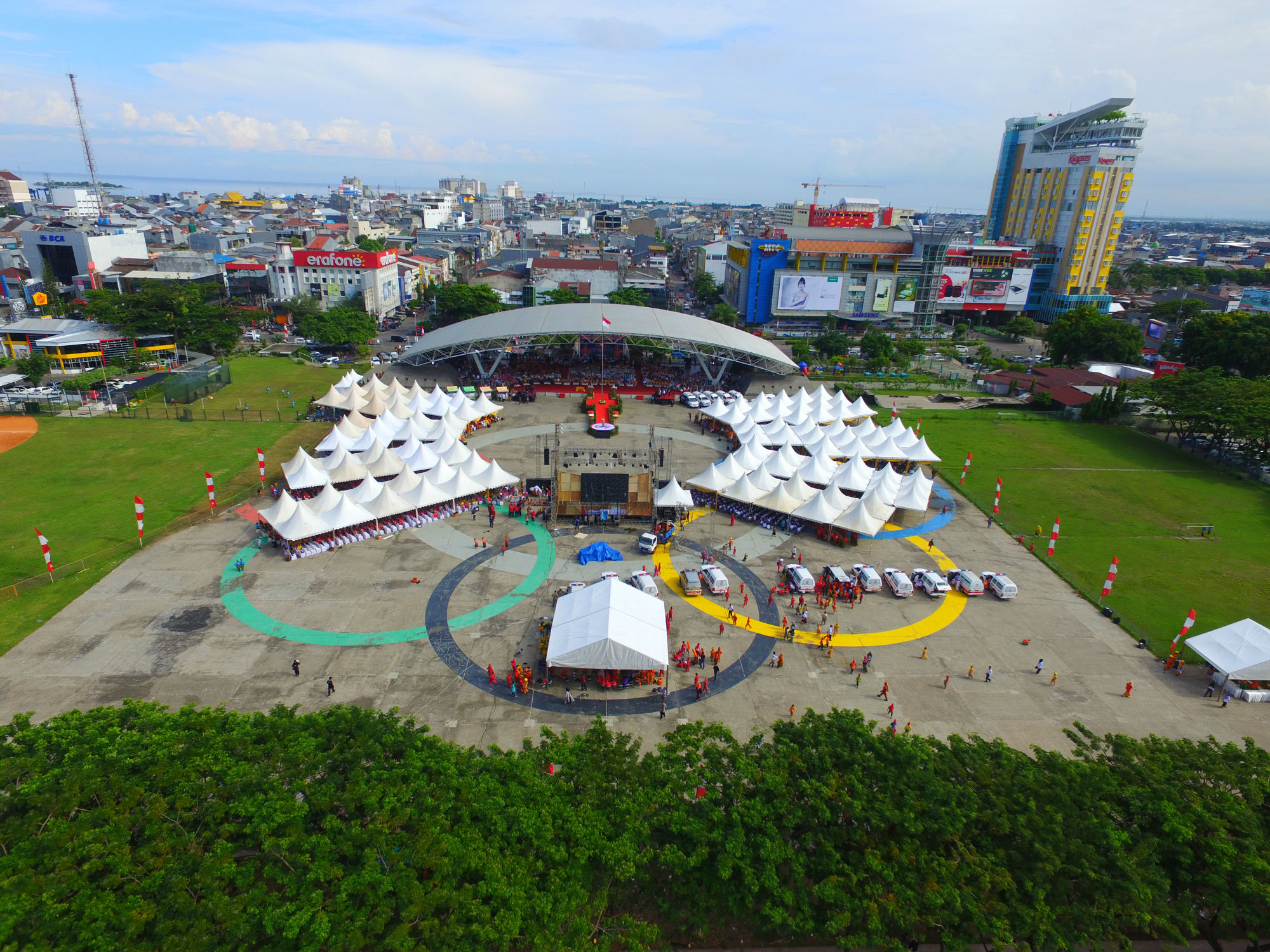 Pemerintah Kota Makassar menggelar upacara puncak peringatan hari ulang tahun kota Makassar ke-409 di Lapangan Karebosi, jalan Ahmad Yani, Rabu (9/11). Peringatan HUT Makassar dimeriahkan sejumlah hiburan bernuansa lokal dan tradisional. Pada kesempatan itu, Wali Kota Makassar Mohammad Ramdhan Pomanto juga meluncurkan sejumlah program inovasi terbaru Pemkot, antara lain nomor layanan pengaduan 112, Kios Kaki Limata, dan ambulans Dottoro'ta. (ARI)