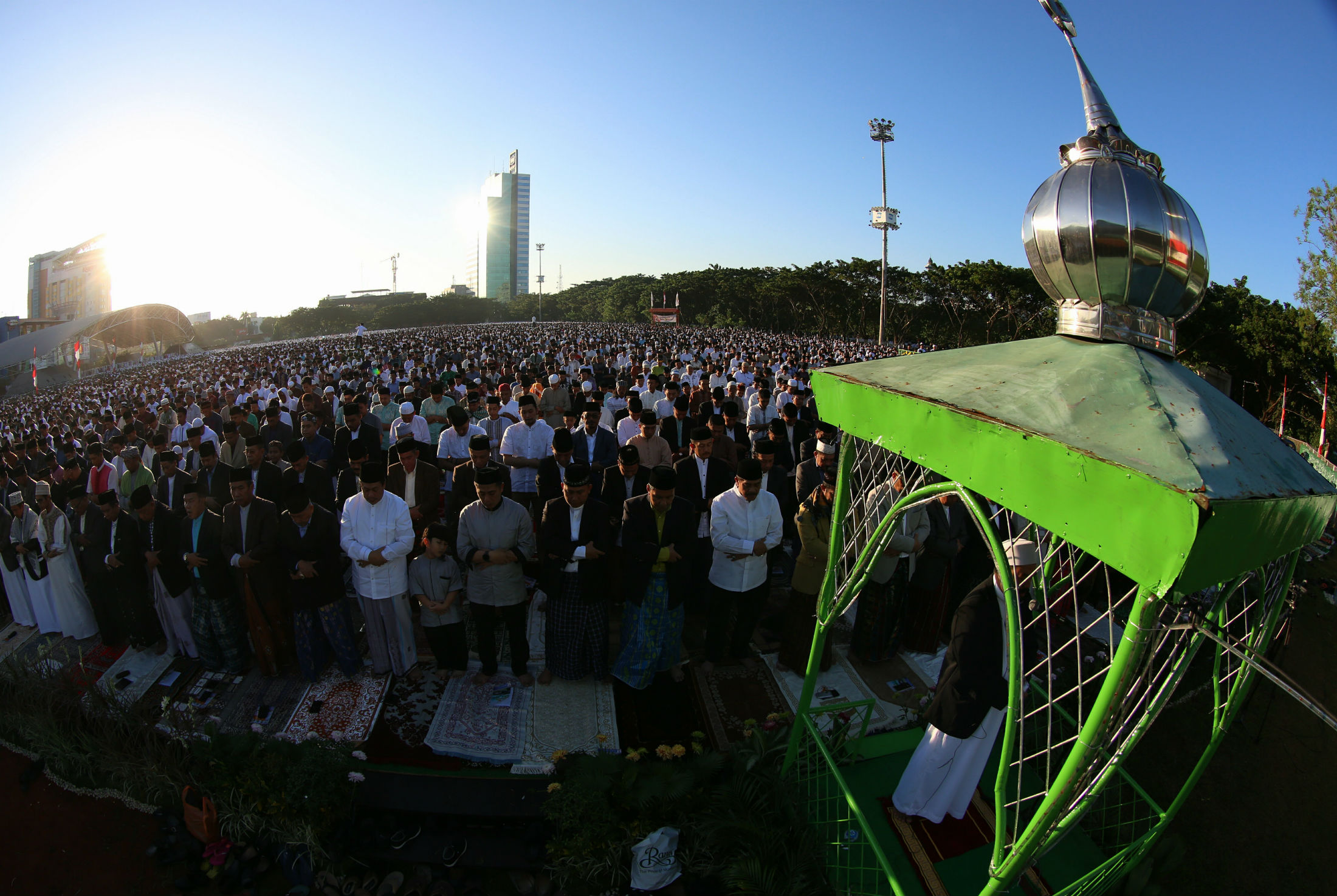 Ribuan umat Muslim melaksanakan salat Idul Fitri 1 Syawal 1437 Hijriah di Lapangan Karebosi Makassar, Rabu (6/7) pagi. Karebosi merupakan salah satu tempat utama melaksanakan salat Id di Makassar. Di antara jemaah terdapat sejumlah tokoh, di antaranya Gubernur Sulawesi Selatan Syahrul Yasin Limpo dan Wali Kota Makassar Mohammad Ramdhan Pomanto. (ARI)