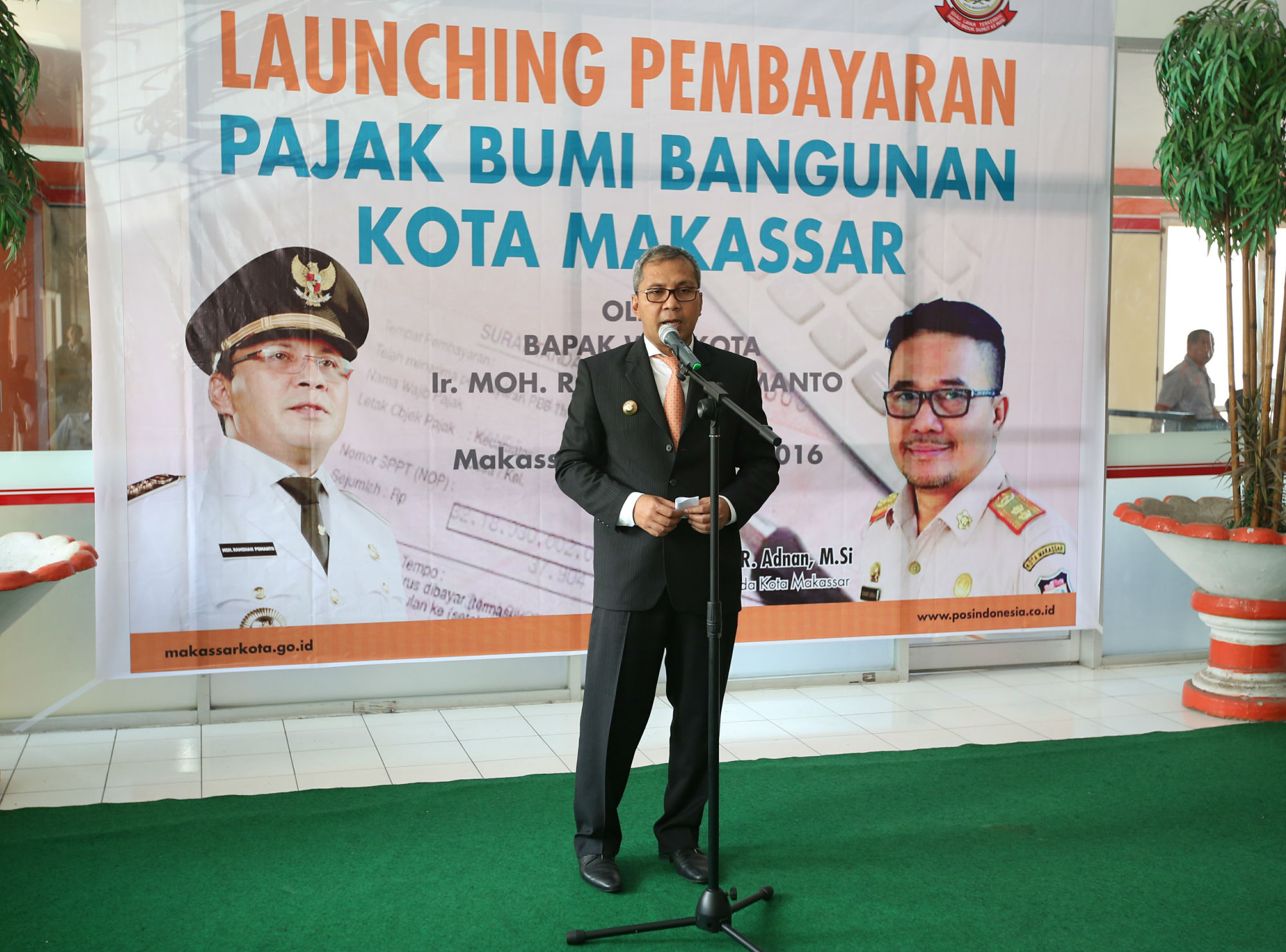 Kantor Pos Makassar meluncurkan sistem pembayaran Pajak Bumi dan Bangunan (PBB), Rabu (10/8). Peluncuran secara simbolis dilakukan Wali Kota Makassar Mohammad Ramdhan Pomanto di Kantor Pos, jalan Slamet Riyadi. Dengan sistem ini, warga Makassar bisa mulai membayar PBB di semua Kantor POS, baik tingkat kelurahan dan kecamatan. Total ada 48 kantor di Makassar yang melayani pembayaran tersebut. (Ari)