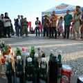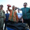 Wali kota Makassar Mohammad Ramdhan 'Danny' Pomanto memimpin pemusnahan 1.800 botol minuman keras (Miras) berbagai merek di pantai losari, Sabtu (18/6). Miras ini merupakan sitaan Satpol PP Kota Makassar dari berbagai tempat penjualan ilegal di berbagai titik di Makassar.