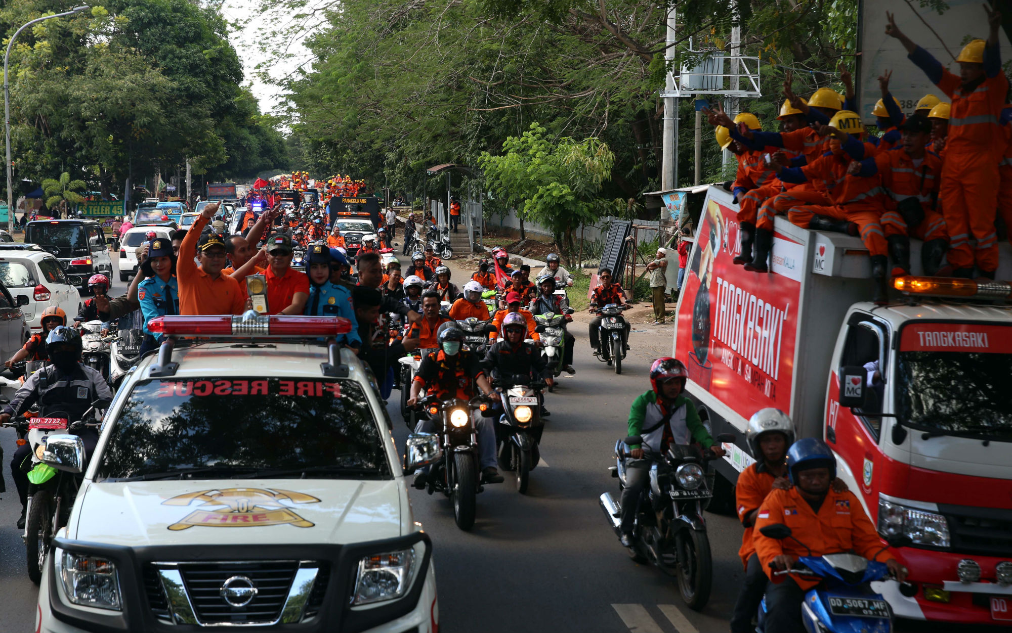 Wali Kota Makassar Mohammad Ramdhan ‘Danny’ Pomanto bersama jajaran satuan kerja perangkat daerah serta puluhan petugas kebersihan melakukan sujud syukur di tempat pembuangan akhir (TPA) Tamangapa kecamatan Manggala, Sabtu (23/7) petang. Sujud syukur sebagai bentuk perayaan kesuksesan kota Makassar meraih penghargaan Adipura tahun 2016 dari Kementerian Lingkungan Hidup dan Kehutanan.