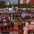 Pemerintah Kota Makassar bersama jajaran TNI-Polri dan masyarakat umum menggelar shalat magrib dan zikir bersama di Anjungan Pantai Losari Makassar, Selasa (23/5). Kegiatan digelar di tengah pelaksanaan Makassar City Expo, pameran inovasi pemerintahan tiga tahun terakhir. Zikir sekaligus dalam rangka menyambut bulan suci Ramadhan. (ARI)