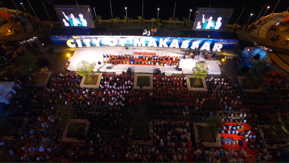 Pemerintah Kota Makassar bersama jajaran TNI-Polri dan masyarakat umum menggelar shalat magrib dan zikir bersama di Anjungan Pantai Losari Makassar, Selasa (23/5). Kegiatan digelar di tengah pelaksanaan Makassar City Expo, pameran inovasi pemerintahan tiga tahun terakhir. Zikir sekaligus dalam rangka menyambut bulan suci Ramadhan. (ARI)