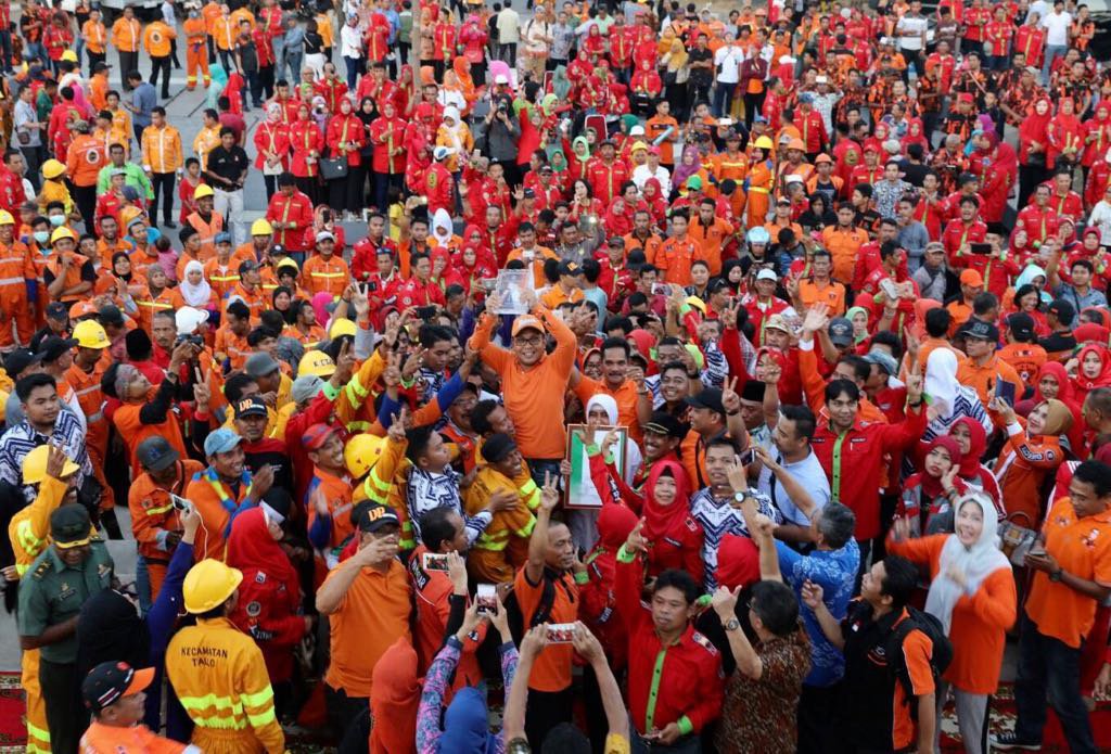 Wali Kota Makassar Danny Pomanto memimpin arak-arakan Piala Adipura ASEAN berkeliling Makassar, Kamis (14/9). Piala yang pertama kali diraih sepanjang sejarah pemerintahan kota Makassar tersebut diarak dan berakhir di Pantai Losari. Di pantai yang menjadi ikon kota itulah, Danny dan ratusan petugas kebersihan langsung menggelar sujud syukur.