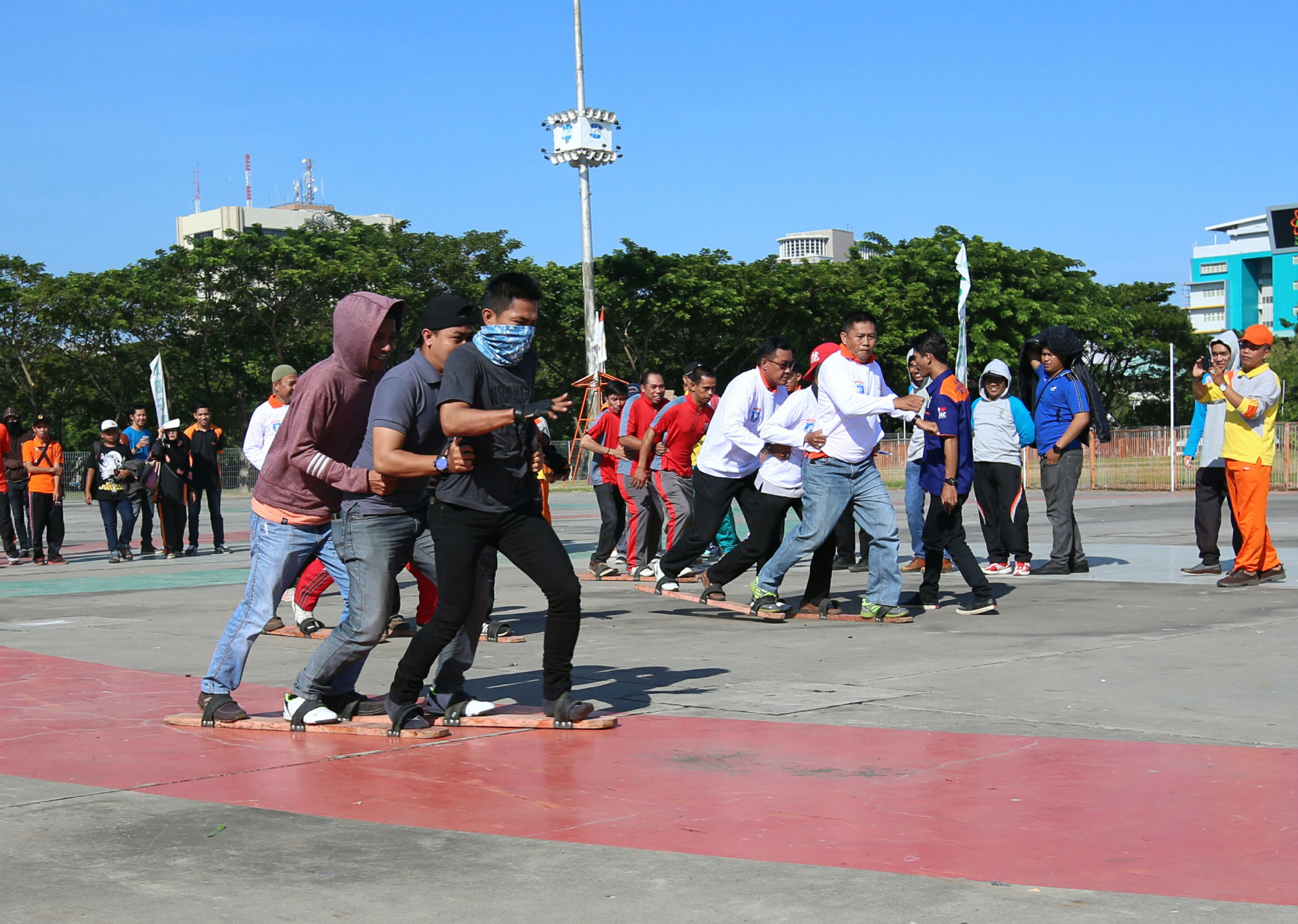Pegawai Negeri Sipil di lingkup Pemerintah Kota Makassar mengikuti serangkaian lomba pada Pekan Olahraga dan Seni di Lapangan Karebosi Makassar, Jumat (5/8). Porseni digelar untuk menyemarakkan peringatan hari ulang tahun kemerdekaan Republik Indonesia yang ke-71. Selain olahraga, para pegawai dari berbagai instansi juga terlibat dalam sejumlah permainan tradisional seperti tarik tambang dan balap karung. (Ari)