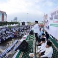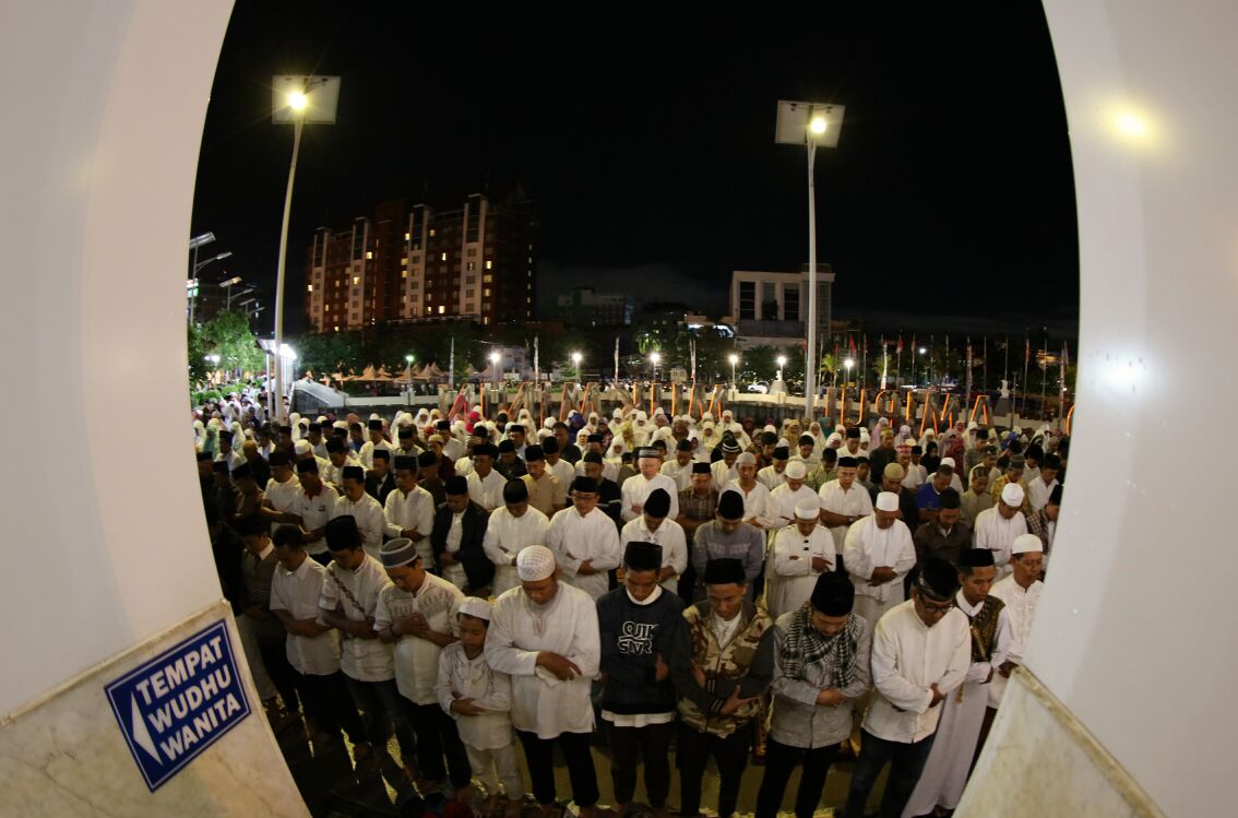 Ribuan santri dan pemerhati pesantren se- Sulawesi Selatan turut meramaikan Gerakan Shalat Subuh Berjamaah di Anjungan Pantai Losari Makassar, Minggu (23/10). Gerakan yang rutin digelar Pemerintah Kota Makassar setiap bulan, kali ini dirangkaikan dengan peringatan Hari Santri Nasional 2016.