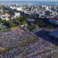 Ribuan warga kota Makassar tumpah ruah menjalankan ibadah salat Ied Idul Adha di Lapangan Karebosi Makassar, Jumat (1/9). Selain masyarakat umum, ibadah tersebut juga diikuti Forum Komunikasi Pimpinan Daerah Tingkat Provinsi Sulawesi Selatan serta tingkat kota Makassar. (ARI)