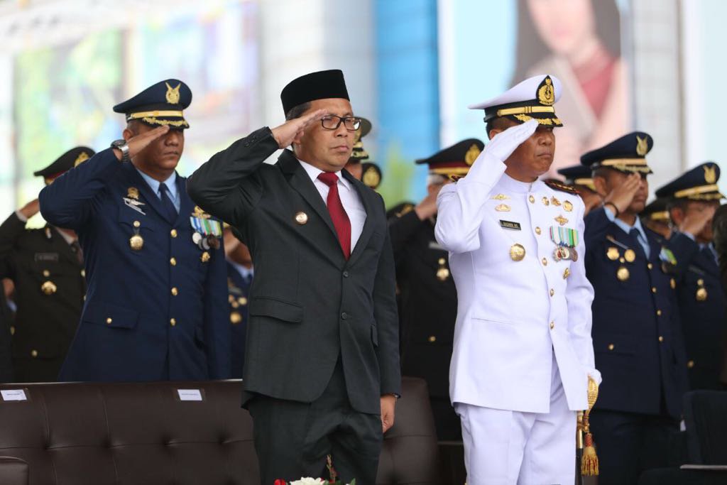 Kepala Staf Daerah Militer (Kasdam) XIV/Hasanuddin Brigadir Jenderal Supartodi memimpin upacara peringatan hari ulang tahun TNI ke-72, di Lapangan Karebosi Makassar, Kamis (5/10). Upacara bertema "Bersama Rakyat TNI Kuat", berlangsung khidmat dihadiri ribuan prajurit TNI dan masyarakat sipil. Pada peringatan tersebut ditampilkan sejumlah pertunjukan di antaranya aksi atraksi beladiri serta defile prajurit dari berbagai kesatuan. (ARI)