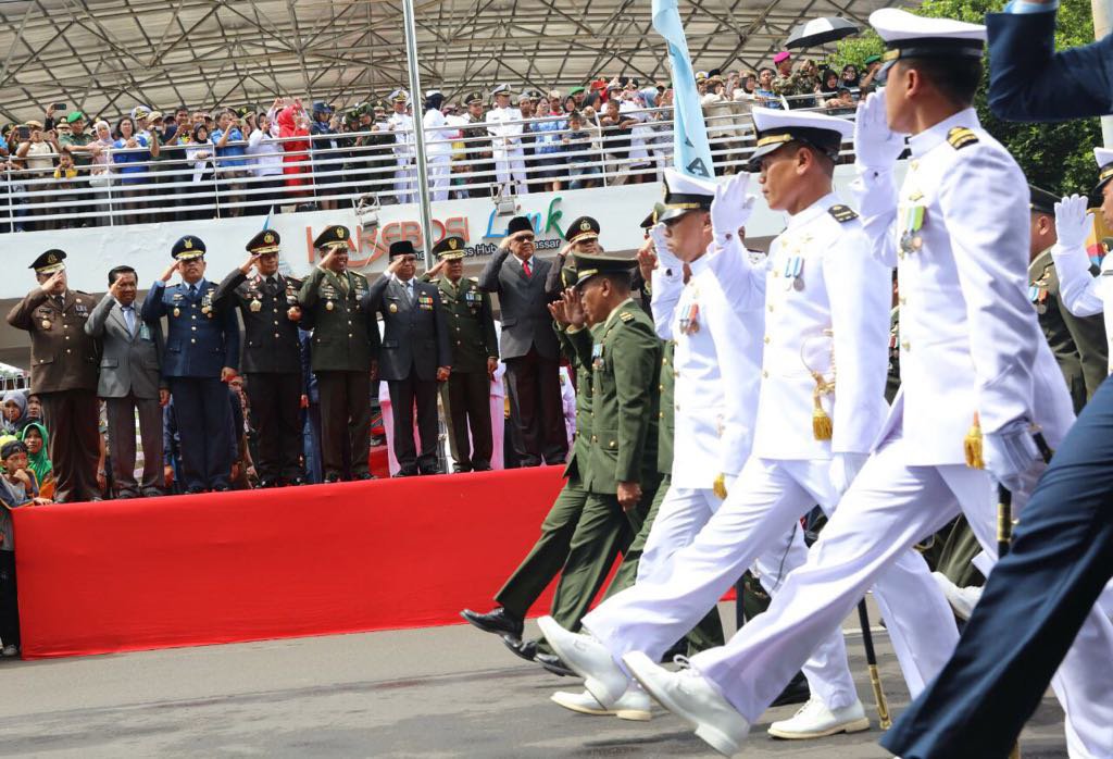 FOTO: Semarak Upacara HUT TNI di Lapangan Karebosi Makassar