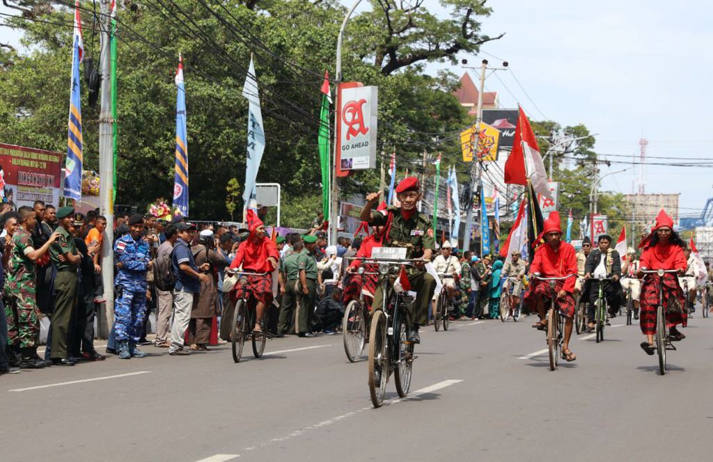 Kepala Staf Daerah Militer (Kasdam) XIV/Hasanuddin Brigadir Jenderal Supartodi memimpin upacara peringatan hari ulang tahun TNI ke-72, di Lapangan Karebosi Makassar, Kamis (5/10). Upacara bertema "Bersama Rakyat TNI Kuat", berlangsung khidmat dihadiri ribuan prajurit TNI dan masyarakat sipil. Pada peringatan tersebut ditampilkan sejumlah pertunjukan di antaranya aksi atraksi beladiri serta defile prajurit dari berbagai kesatuan. (ARI)