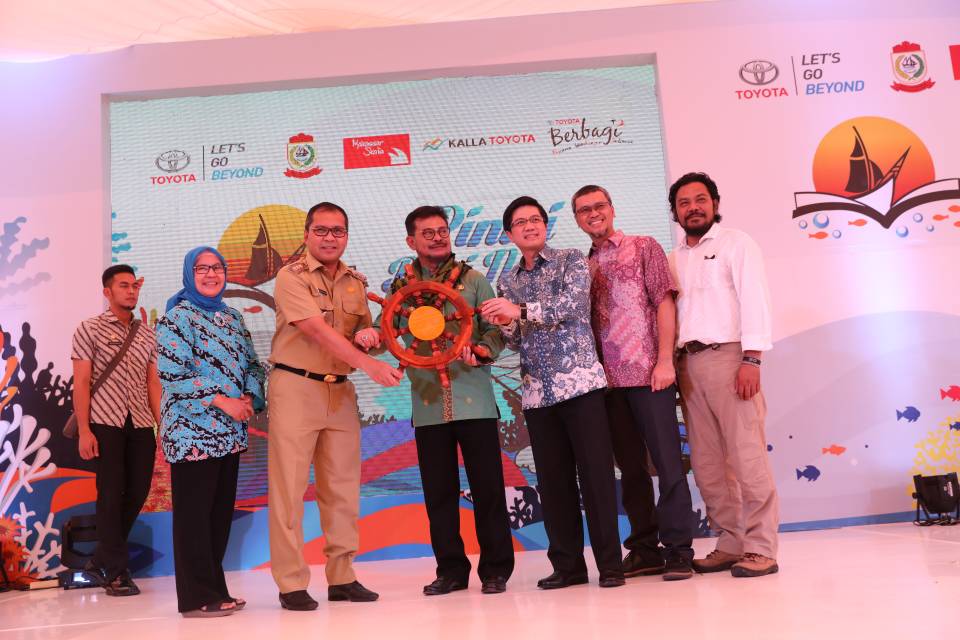 PT Toyota-Astra Motor (TAM) melalui program corporate social responsibility (CSR) berbasis lingkungan meresmikan program Pinisi Bagi Negeri, di Pantai Losari Makassar, Jumat (21/4). Satu unit kapal layar phinisi senilai Rp1 Miliar disumbangkan untuk digunakan siswa sekolah maupun masyarakat untuk berlayar di sekitar pulau Samalona, di perairan Makassar. Diharapkan, program ini meningkatkan pengetahuan masyarakat tentang budaya maritim dan kepedulian lingkungan bawah laut. (ARI)