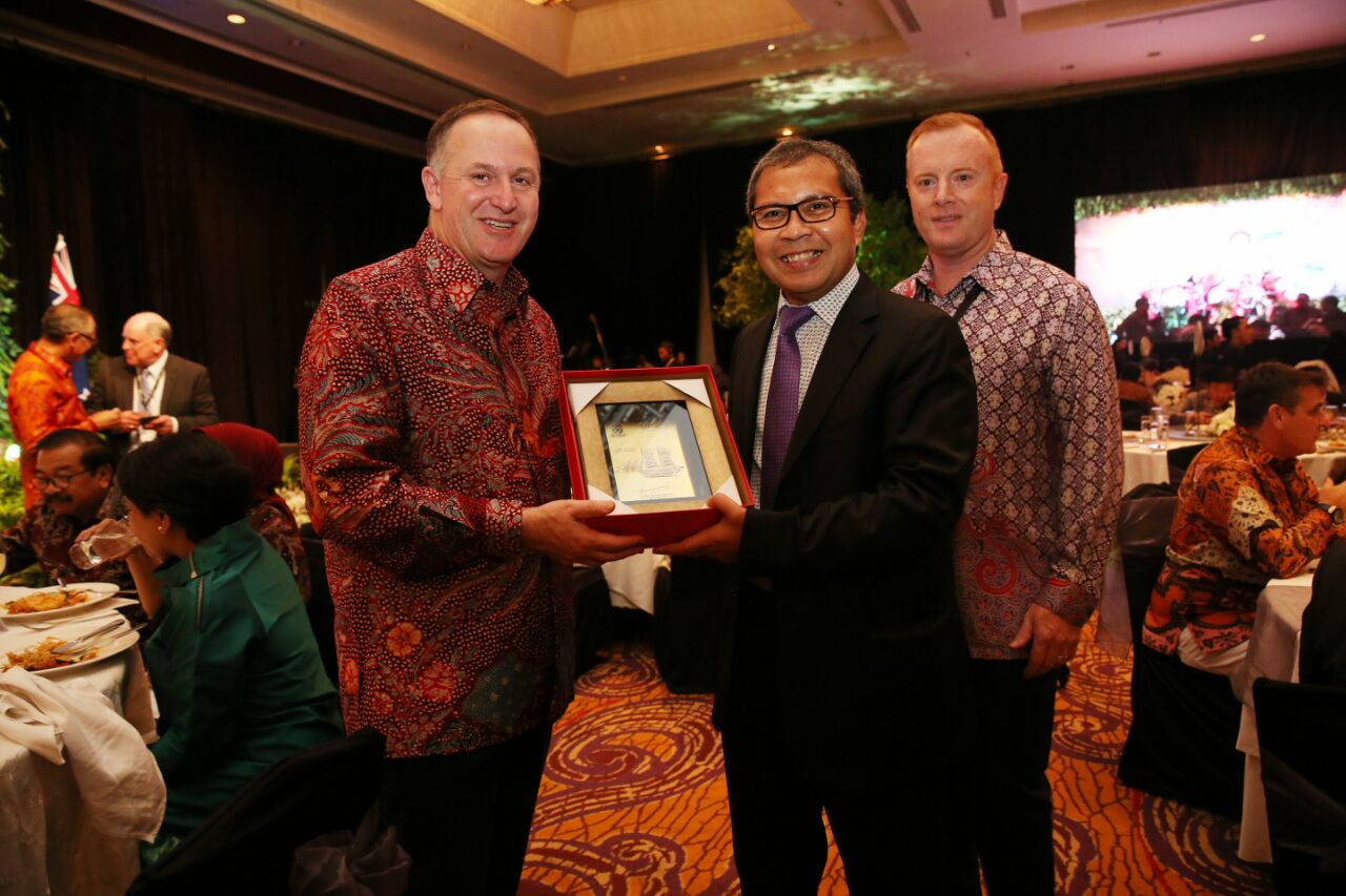 Jamuan makan malam berlangsung hangat, sesekali diselingi obrolan santai. Baik Danny, Pakde Karwo, PM John Key, dan Menteri Mc Clay menikmati sajian yang terhidang sambil sesekali berbincang akrab. Di kesempatan yang sama, Danny menyerahkan cendramata berupa pelakat perahu Phinisi kepada Perdana Menteri John Key dan Menteri Perdagangan Selandia Baru Todd Mc Clay. (NIA)