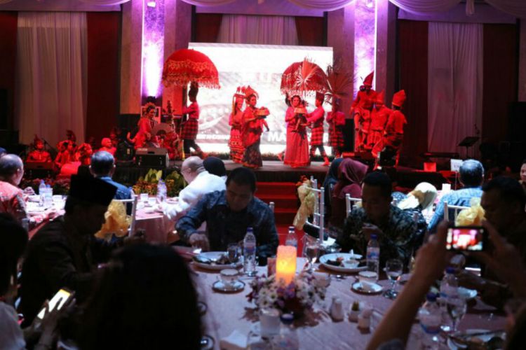 Para tamu disajikan sepuluh ikon kuliner khas Makassar serta hiburan tari dan musik.