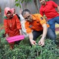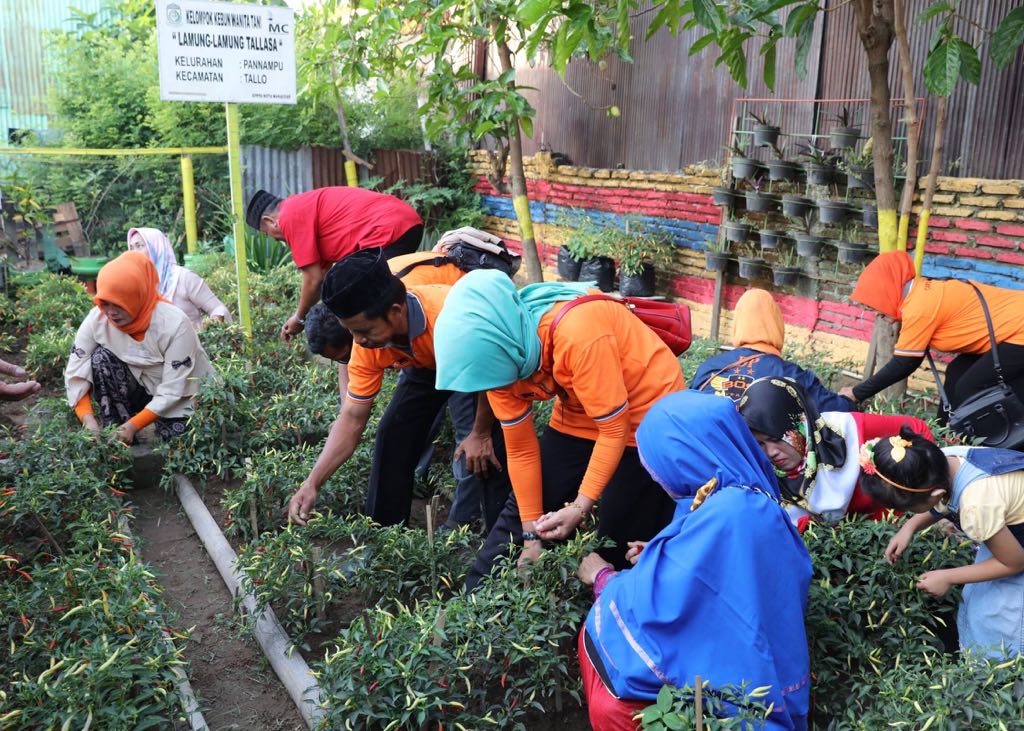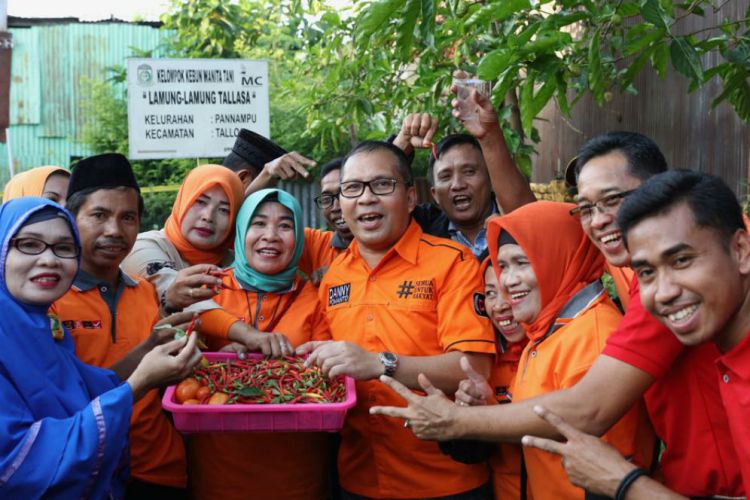 Wali Kota Makassar Danny Pomanto memimpin panen cabai di kawasan Cappoa kelurahan Pannampu, kecamatan Tallo, Sabtu (15/7). Sekitar 10 kilogram cabai merah dipetik untuk dijual ke pasaran. Kawasan tersebut merupakan salah satu dari 700 Badan Usaha Lorong ( BULo) di Makassar, yang dikembangkan masyarakat secara swadaya menggunakan lahan kosong di lorong-lorong sejak tahun lalu. (ARI)