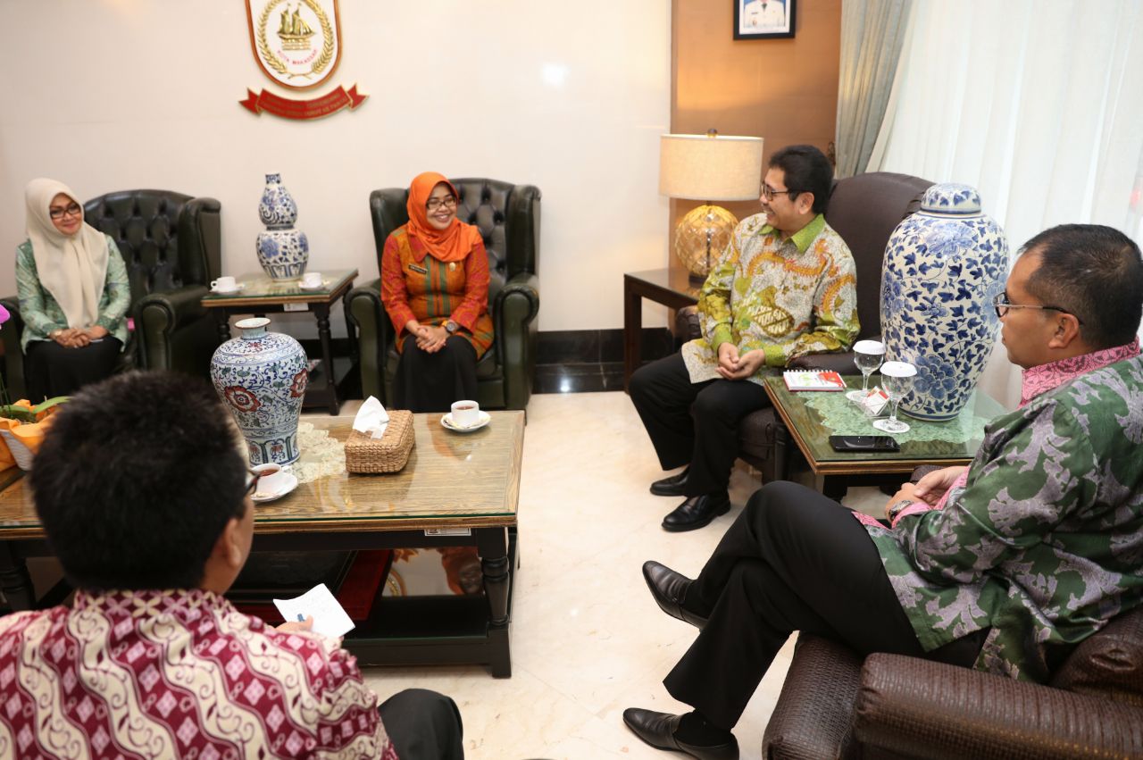 Wali Kota Makassar Mohammad Ramdhan Pomanto menerima kunjungan Sekretaris Kementerian Pemberdayaan Perempuan dan Perlindungan Anak Wahyu Hartoyo di rumah jabatan wali kota, jalan Penghibur Makassar, Kamis (30/3). Wahyu dan rombongan berkunjung dalam rangka persiapan ajang Jelajah Three Ends di Makassar.