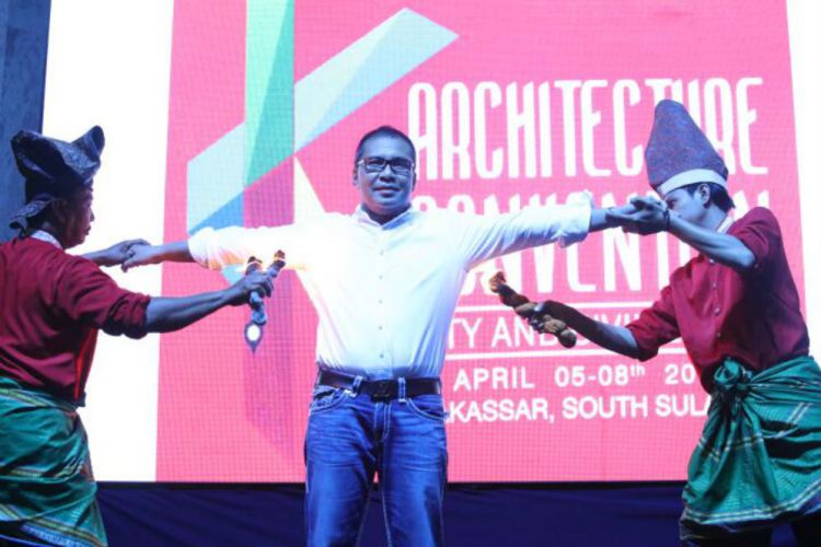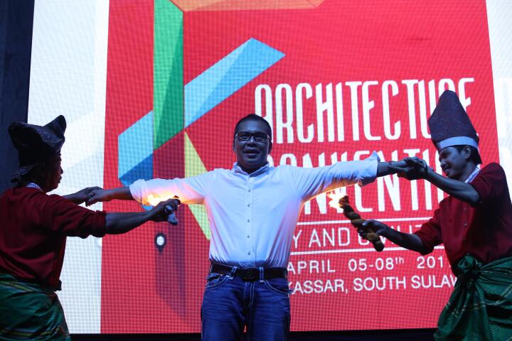 Wali Kota Makassar Mohammad Ramdhan 'Danny' Pomanto ikut serta dalam atraksi penari Pepe pepeka ri Makka, saat menjamu delegasi Ikatan Arsitektur Indonesia (IAI), di rumah jabatan wali kota, Jumat malam (7/4). Pepe pepeka ri makka merupakan tarian khas tradisional Makassar, yang terinsipirasi dari kisah Nabi Ibrahim saat dibakar kaum Quraish. Tarian mempertunjukkan keahlian memainkan api tanpa terbakar atau merasa kepanasan. (ARI)