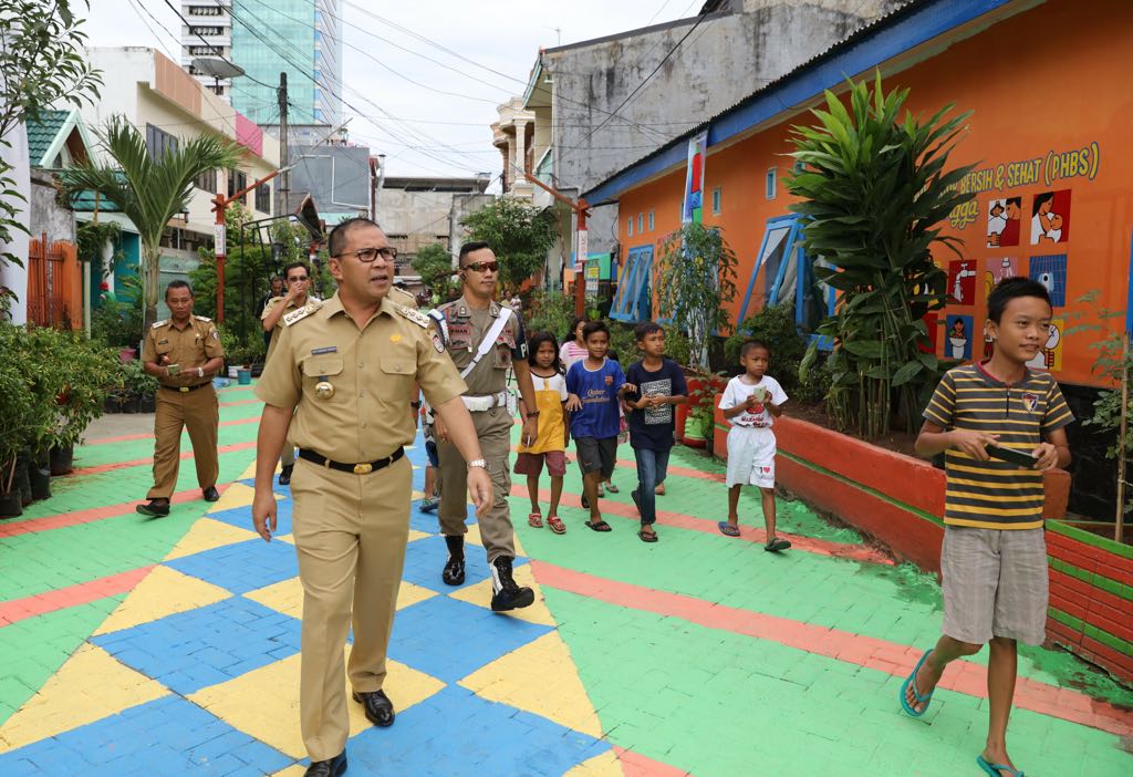 Wali Kota Makassar Muhammad Ramdhan Pomanto memantau kesiapan Badan Usaha Lorong (BULo), di jalan Lompo Battang, kecamatan Ujung Pandang, Makassar, Selasa (11/7). Lorong tersebut rencananya dikunjungi Presiden Republik Indonesia Joko Widodo pada hari ini. Jokowi berada di Makassar dalam rangka membuka peringatan Hari Koperasi Nasional ke-70. (ARI)