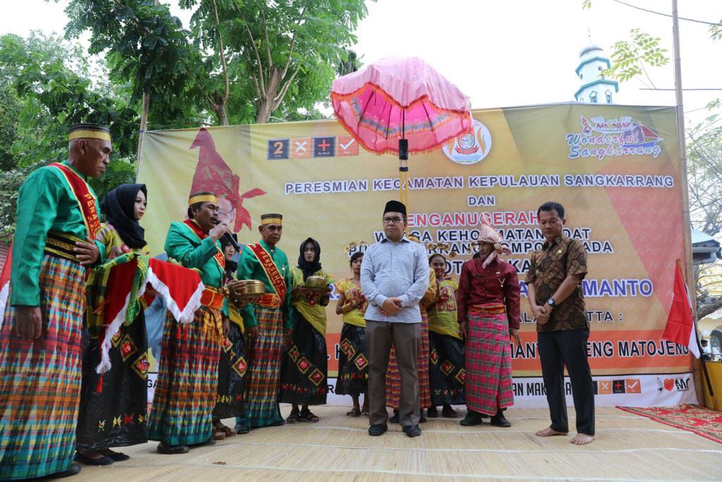 Wali Kota Makassar Danny Pomanto dianugerahkan gelar kehormatan Tumalabbirit'ta Daeng Mattojengo leh warga masyarakat adat Pulau Barrang Lompo, kecamatan Kepulauan Sangkarrang Makassar. Penyematan gelar tersebut dilakukan saat Danny mengunjungi pulau Barrang Lompo untuk menandatangani prasasti peresmian kecamatan baru, Jumat (18/8). Dalam bahasa Makassar, Mattojeng berarti orang yang bersungguh-sungguh. Pada hari yang sama, wali kota Danny berkeliling wilayah kepulauan di Makassar dan mendapatkan sambutan antusias masyarakat setempat. (ARI)