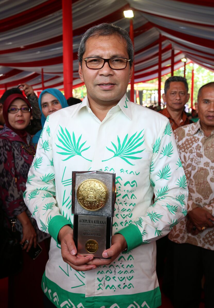 Tahun ini Kota Makassar meraih penghargaan Adipura Kirana, yakni kota yang mampu mendorong pertumbuhan ekonomi melalui trade, tourism and investmen yang berbasis pengelolaan lingkungan hidup. Penerimaan piala untuk Makassar diwakili langsung Wali Kota Mohammad Ramdhan Pomanto. (NIA)