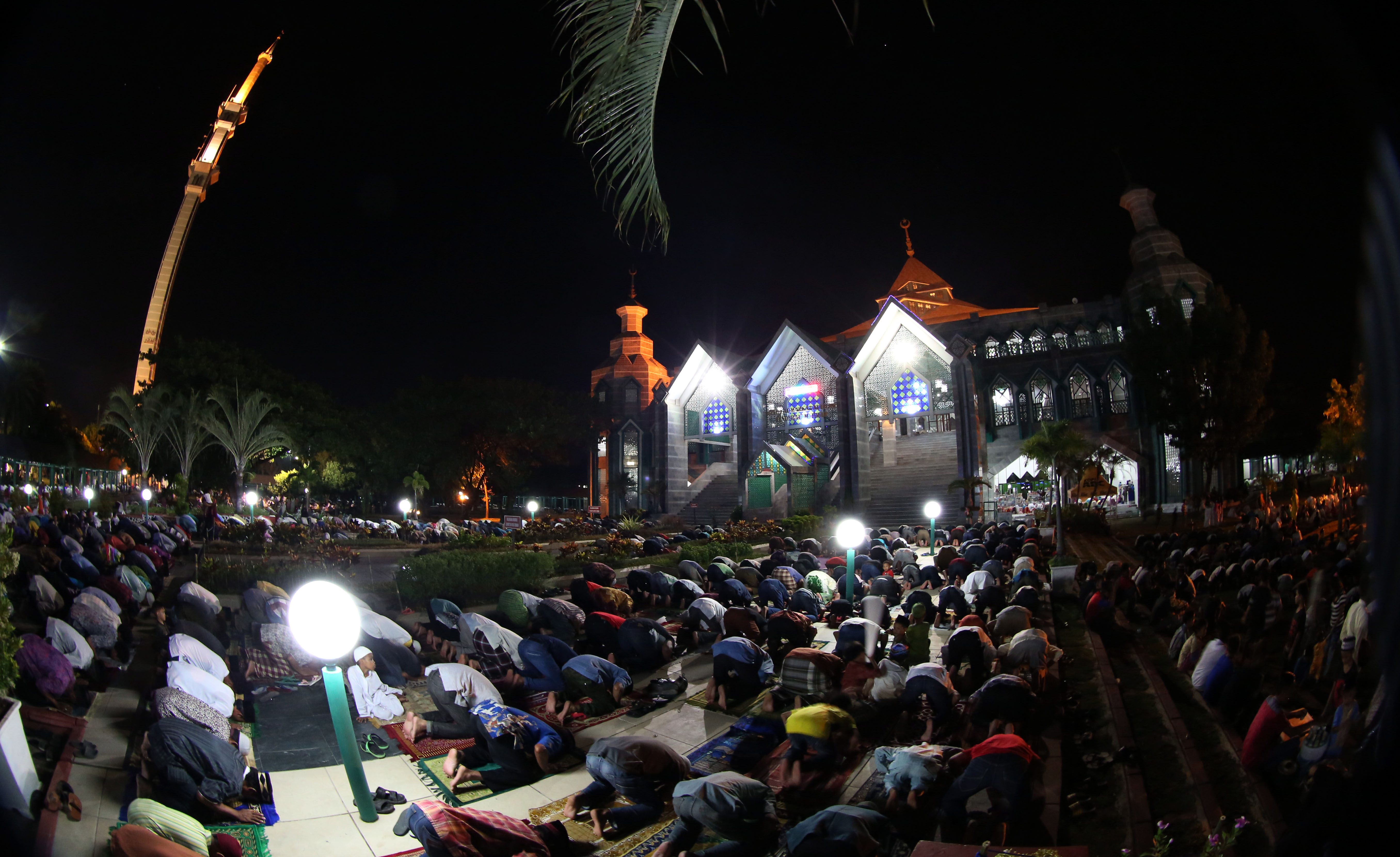 Ribuan warga kota Makassar dan sekitarnya menjalankan ibadah shalat tarawih di Masjid Al Markaz Al Islami Jenderal M Jusuf, Kamis (9/6) malam. Tiga lantai bangunan dipenuhi jemaah, yang membuat sebagian orang harus membentuk barisan hingga ke pelataran masjid.