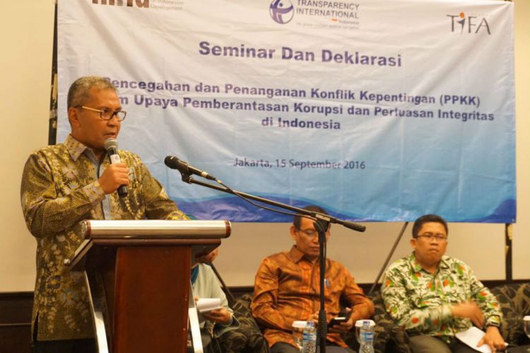 Merdeka.com, Makassar - Wali Kota Makassar Mohammad Ramdhan “Danny” Pomanto berbicara sebagai narasumber pada seminar bertema anti korupsi yang digelar lembaga Transparency International Indonesia di Jakarta, Kamis (15/9).