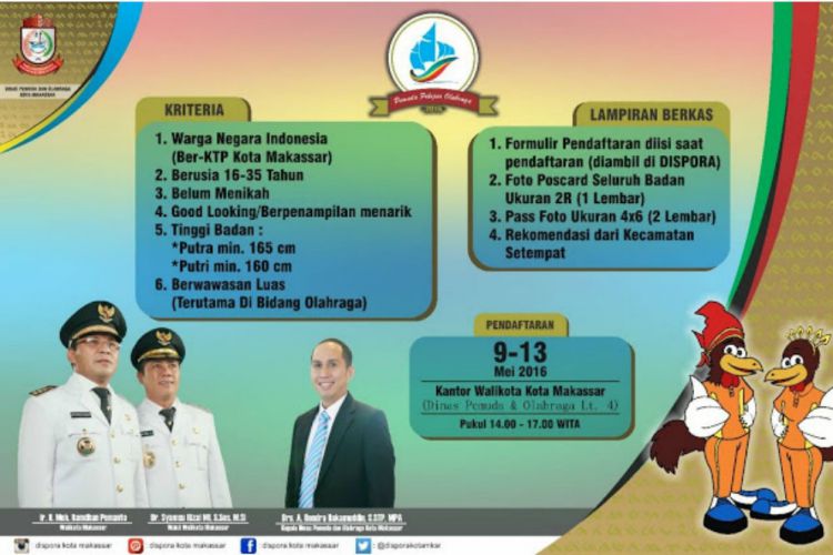 “Tujuannya untuk memasyarakatkan olahraga dan mengolahragakan masyarakat. Nanti dari setiap kecamatan akan dipilih lagi untuk kita angkat menjadi Duta Olahraga Kota Makassar,” kata Kepala Dinas Pemuda dan Olahraga Kota Makassar, Henda Hakamuddin, Senin (9/5).