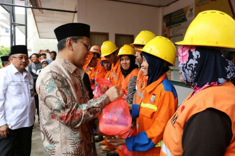 Dia membagikan paket zakat infaq dan sedekah untuk 2.500 petugas kebersihan