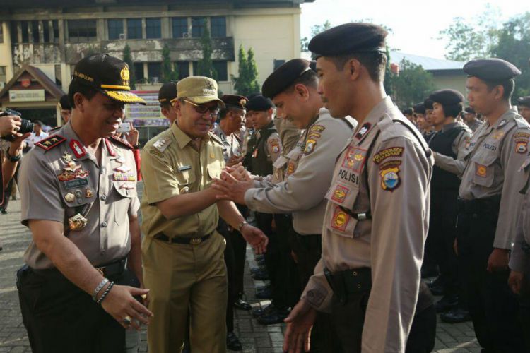 Merdeka.com, Makassar - Wali Kota Makassar Mohammad Ramdhan ‘Danny’ Pomanto dan Kepala Polda Sulawesi Selatan Inspektur Jenderal Pol Anton Charliyan memimpin apel bersama Forum Koordinasi Pimpinan Daerah di halaman Markas Polda Sulsel, Rabu (10/8) pagi.