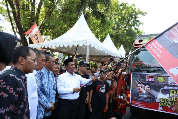Merdeka.com, Makassar - Menteri Pertanian Republik Indonesia (RI), bersama Gubernur Sulsel, Prof. Nurdin Abdullah, Wali Kota Makassar, Moh. Ramdhan 'Danny' Pomanto beserta Anggota DPR RI, Aliyah Mustika melepas 500 truck pengangkut bantuan sandang dan pangan bagi korban gempa dan tsunami di Kota Palu, Kabupaten Donggala, dan Sigi, Sulawesi Tengah.