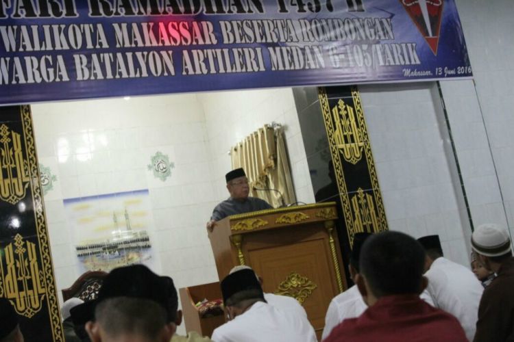 Merdeka.com, Makassar - Sekretaris Daerah Kota Makassar Ibrahim Saleh menggelar Safari Ramadan dengan menjalankan ibadah tarawih bersama keluarga besar dan warga TNI Batalion Artileri medan Yon 6-105/Tarik, di Masjid Ruhut Taqwa jalan Mappaoudang, Senin (13/6) malam.