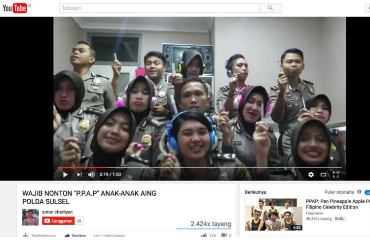 Virus PPAP menyentuh berbagai kalangan masyarakat. Tak terkecuali aparat polisi. Salah satu keseruannya bisa dilihat pada video youtube berjudul, “WAJIB NONTON "P.P.A.P" ANAK-ANAK AING POLDA SULSEL” yang diunggah akun dengan nama dan foto profil Kapolda Sulsel Anton Charliyan.