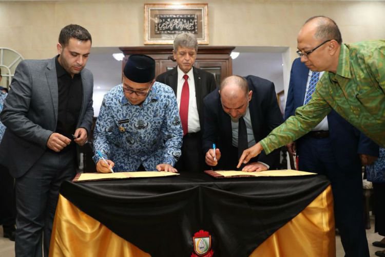 Wali kota Makassar Danny dan Wali Kota Hebron, Palestina Mr. Tayseer. ©2018 Merdeka.com