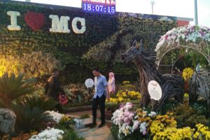 Eloknya taman bunga di Pantai Losari bikin pengunjung rela antre