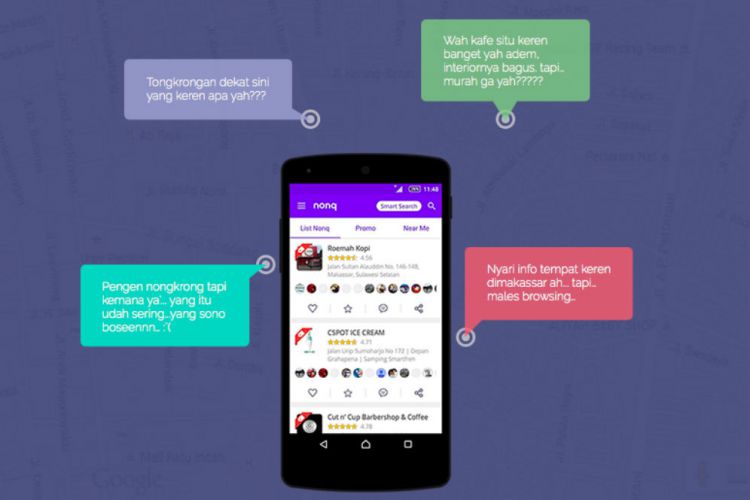 Jika sedang berada di Makassar, coba manfaatkan aplikasi NonQ. Aplikasi ini dirancang developer lokal Indevtekno, khusus buat orang-orang yang kesehariannya tidak bisa lepas dari yang namanya nongkrong. Dengan NonQ, yang berasal dari kata nongkrong, Anda bisa menemukan tongkrongan pilihan sesuai kebutuhan.