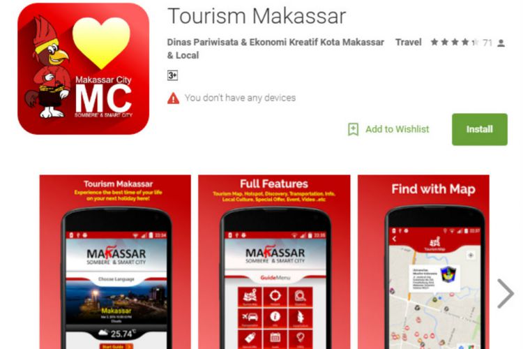 Hingga 3 Mei, aplikasi 'Tourism Makassar' sudah diunduh sekitar 5 ribu pengguna android di Play Store, dengan memperoleh rating 4,4. Jika penasaran seperti apa aplikasinya, belum terlambat mengunduhnya sekarang.