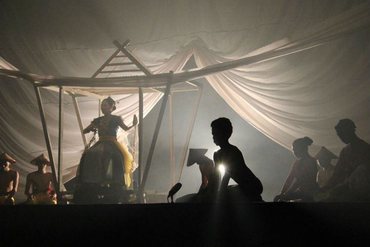 Teater titik dua menampilkan petikan naskah berjudul Meong Palo Karellae / We Datunna Sangianserri. Naskah merupakan petikan dari kitab La Galigo, epik mitos penciptaan peradaban Bugis di Sulawesi Selatan.